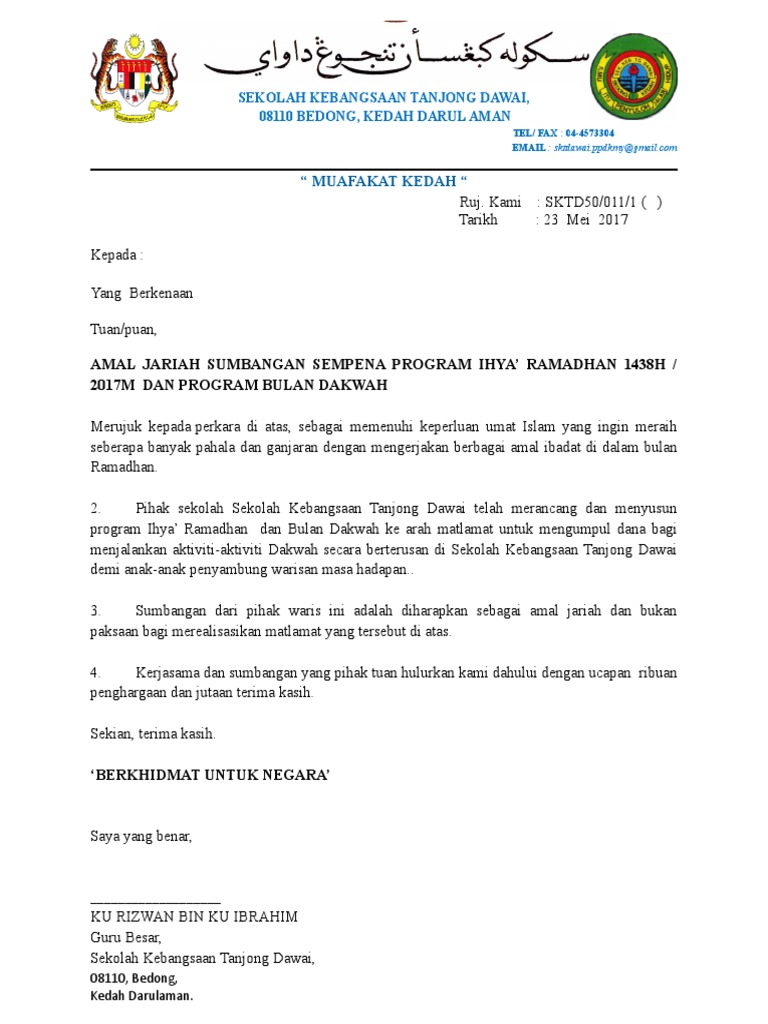 Contoh Surat Memohon Sumbangan Ihya Ramadhan Contoh Surat